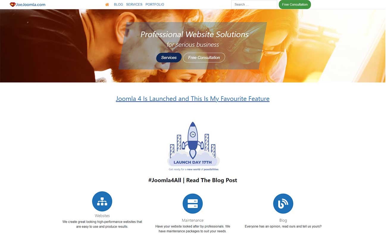 Website screenshot of blog category page for JoeJoomla